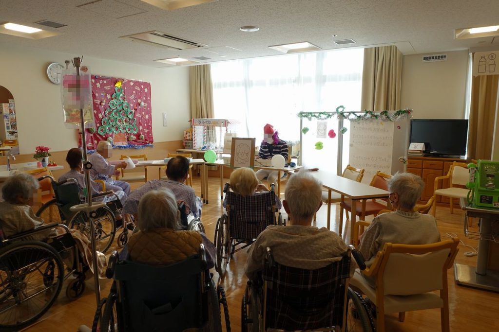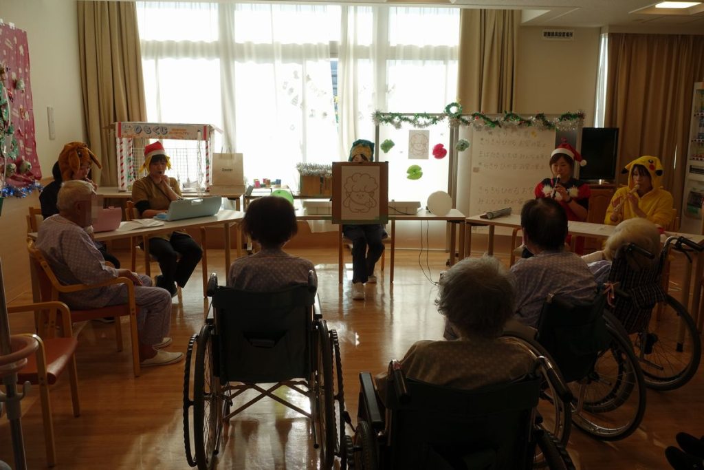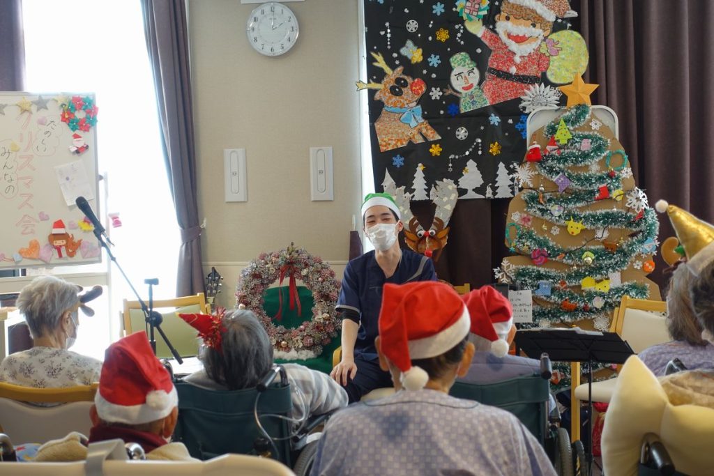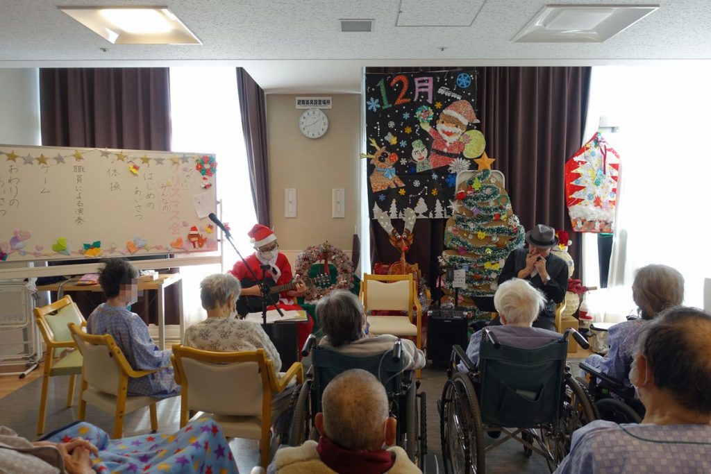 その後、スタッフによるギターやハーモニカ演奏、クリスマスに関する曲などの歌唱を行い、皆さんも曲に合わせて手を振ったり手拍子したり盛り上げてくださいました。