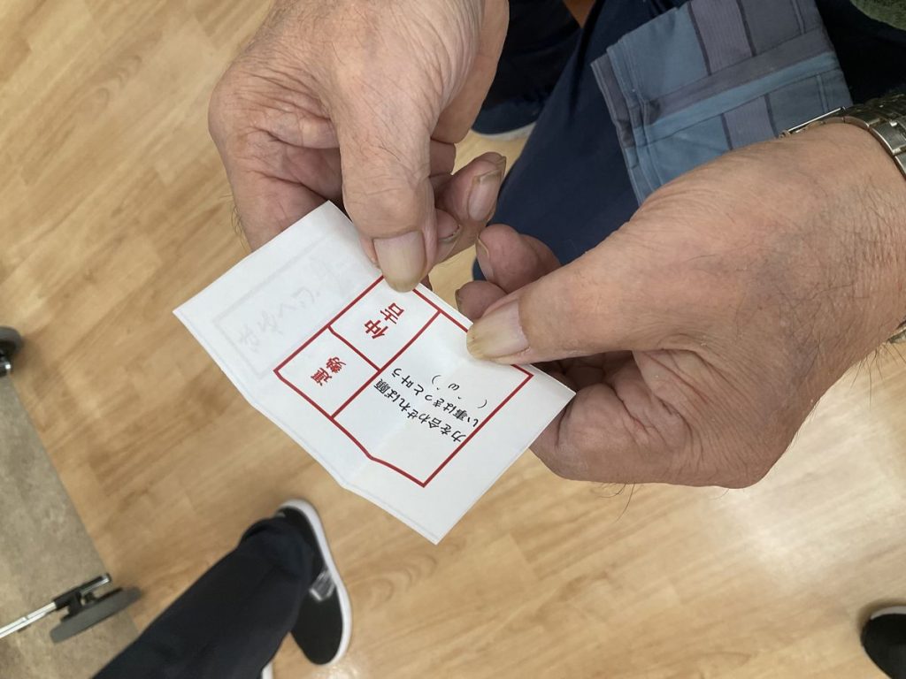 おみくじを引かれた後は、利用者さん同士で見せ合っておられ、楽しんでいただけました。